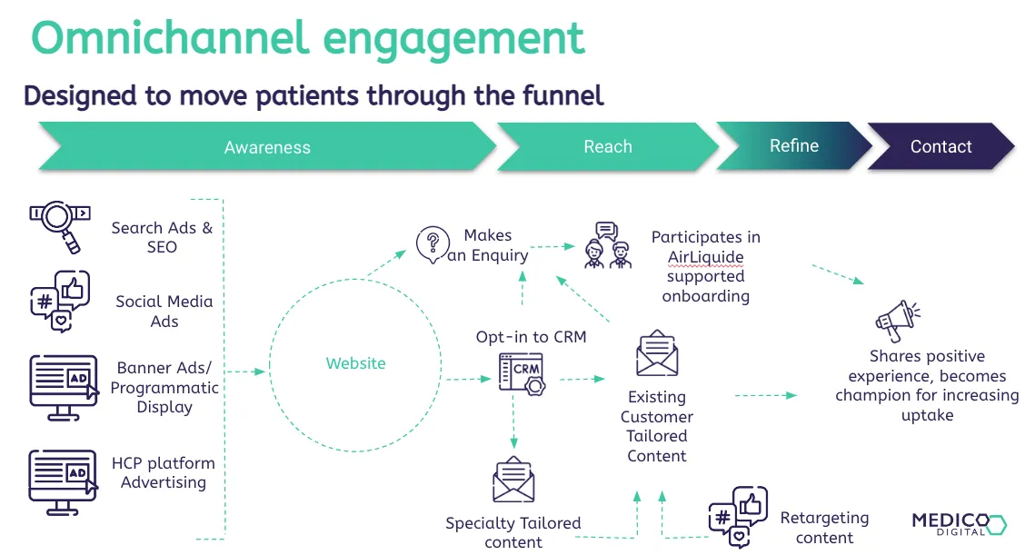 In a perfect world, omnichannel would be described as a seamless integration of messaging across both online and offline touch points as a patient or HCP moves down their sales funnel towards conversion.